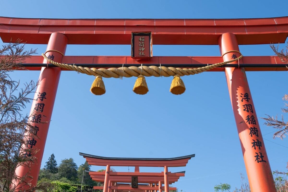The sight of 92 torii gates lined up along the approach to the hilltop is truly awe-inspiring, and it fills your heart with serenity. As you ascend the approximately 300 steps, the harmonious fusion of crimson torii gates and the picturesque Ukiha landscape unfolds before your eyes in a spectacle of breathtaking beauty. The shrine is all lit up at night, too, so don't miss it!